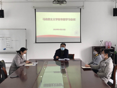 4月22日,马克思主义学院召开专题学习会议,院长许俊生,副院长贾妍春,学院返校教师参加会议。会议由院长许俊生主持。