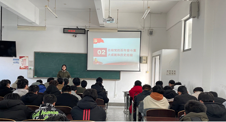 为推进党史学习教育进班级进主题班会,12月12日下午马克思主义学院温银玉、费羽洁、宋青三位思政教师,结合党的十九届六中全会精神,为药品生产2012,智控2021,数控2031三个班级的学生讲授了题为“勿忘昨天、无愧今天、不负明天”的党史课。