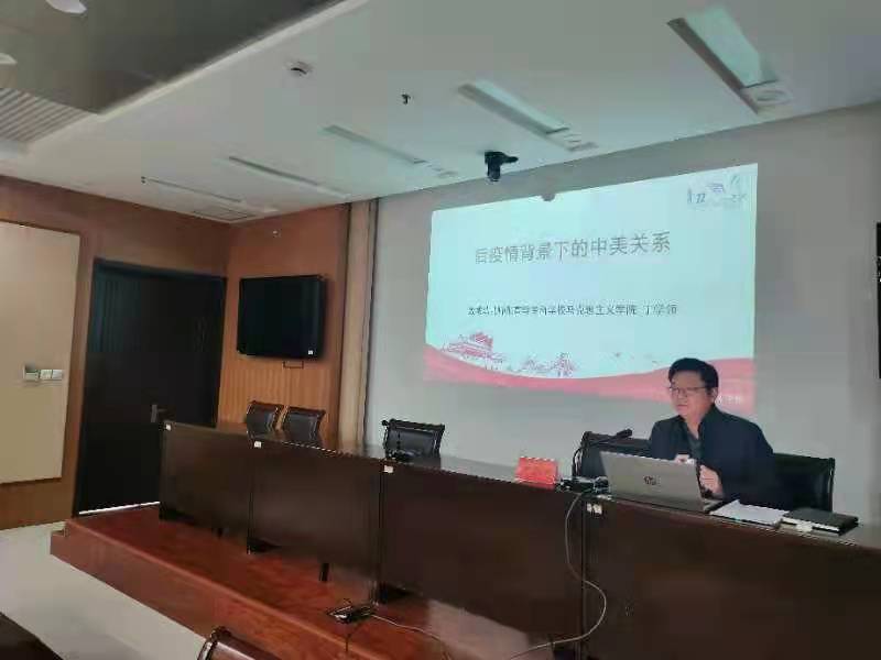 会上,三家兄弟院校共同学习了《关于加强新时代马克思主义学院建设的意见》,并在课程建设、教学改革、师资队伍、项目研究、社团建设等方面开展热烈交流和研讨,大家取长补短互赏互鉴,并一起聆听了盐城幼儿师范高等专科学校马克思主义学院院长丁学领副教授的《后疫情时代的中美关系》专题报告会。