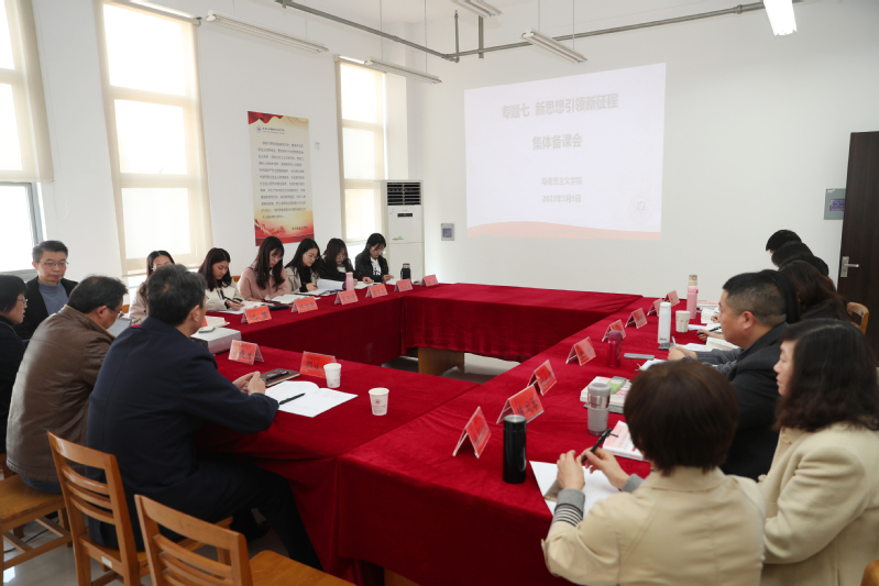 为深入贯彻党的十九届六中全会精神, 落实教育部《新时代高校思想政治理论课教学工作基本要求》, 不断提高学校思想政治理论课教育教学质量和效果,3月9日下午,校党委书记邵从清来到图文信息中心212会议室,参加了马克思主义学院毛泽东思想和中国特色社会主义理论体系概论教研室的集体备课会,并与教师们进行了两个小时的讨论和交流。马克思主义学院领导班子、全体教师参加会议。会议由马克思主义学院副院长贾妍春主持。