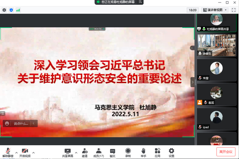 2022年5月11日下午,马克思主义学院开展政治理论学习活动,党支部书记许俊生主持会议。