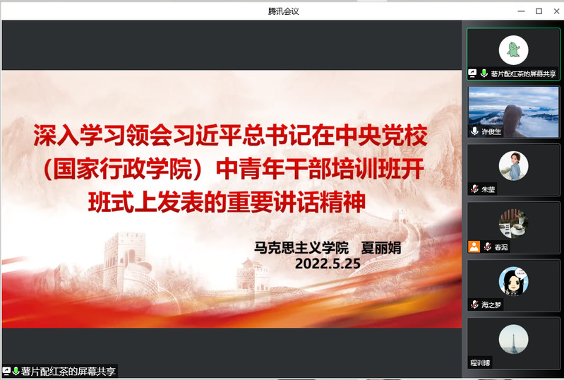 许俊生院长总结,总书记的六次授课虽然各有侧重但是一脉相承。年轻干部关乎于国家的命运,确保党和人民事业后继有人的重要保障。加强年轻干部培养历练,夯实成才之路。广大年轻干部要积极学习,勇于担当,向榜样学习,增强党性修养,奋进新征程,建功新时代。