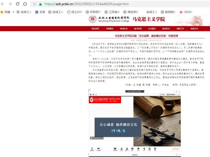 为深入贯彻落实十九届中纪委六次全会和十四届省纪委二次全会精神,进一步增强马克思主义学院直属党支部党员干部的廉洁自律意识,牢固树立“不想腐不能腐不敢腐”的思想自觉,根据中共盐城工业职业技术学院纪律检查委员会《关于开展“510”警示教育月活动的通知》(盐工院纪〔2022〕4号)要求和马克思主义学院直属党支部活动方案开展了系列活动。