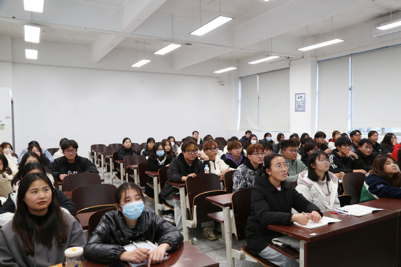课堂上,刘玉申围绕“内涵博大精深”“彰显实践伟力”“绽放真理光芒”三个方面阐释了习近平新时代中国特色社会主义思想。刘玉申指出,习近平新时代中国特色社会主义思想是马克思主义中国化时代化的最新理论成果,实现了马克思主义中国化时代化新的飞跃,开辟了马克思主义中国化时代化新境界,并指明了在新征程上进一步推进马克思主义中国化时代化的前进方向。刘玉申强调,党的二十大报告在总结历史经验基础上,提出并阐述了“两个结合”“六个必须坚持”等推进党的理论创新的科学方法,为继续推进党的理论创新提供了根本遵循,我们要坚持好、运用好。