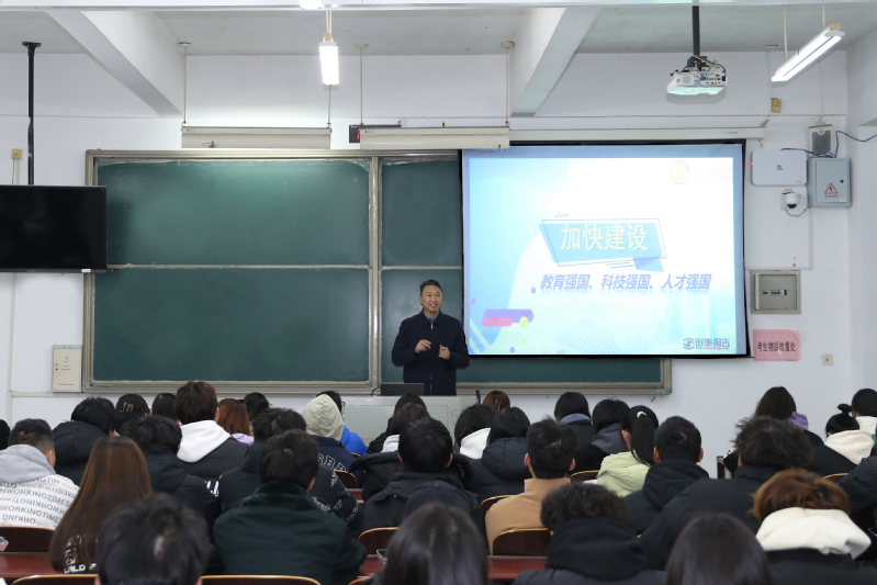 课堂上,邵从清理论联系实际,围绕“着眼长远发展的重大抉择”“铸就强国建设的坚实基础”“加快强国建设的战略部署”“充分发挥高校的重要作用”四个方面,向同学们阐释了在强国建设过程中,教育、科技、人才相辅相成的关系。邵从清指出,实现中华民族伟大复兴,科技是关键、人才是基础、教育是根本,必须认识到教育、科技、人才具有内在一致性和相互支撑性,要把三者作为一个完整体系统筹推进。