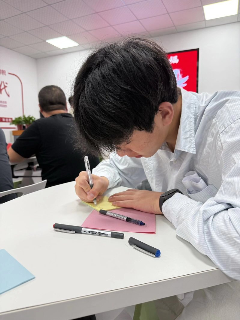 四是青春献礼,同学们在便签上写下对祖国的真挚祝福,共同布置“我为祖国献祝福”背景墙,并以全班合影的方式定格对祖国的热爱。