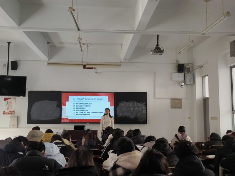12月26日,我院孙良媛老师在公共教学楼3303教室开设《毛泽东思想和中国特色社会主义理论体系概论》公开课。学校督导罗文华、陈玉红两位教授走进课堂指导授课,学院院长杨娟、副院长刘大伟及部分专任教师参与听课。