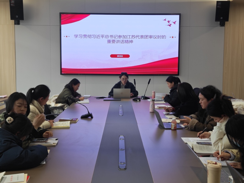 会上,温银玉老师领学2026年政府工作报告主旨内容,重点对2025年工作回顾、“十五五”时期主要目标和重大任务、2026年经济社会发展总体要求和政策取向等方面内容进行解读。费羽洁老师领学习近平总书记参加江苏代表团审议和参加农工党九三学社医药卫生界社会福利和社会保障界联组会上的重要讲话精神。